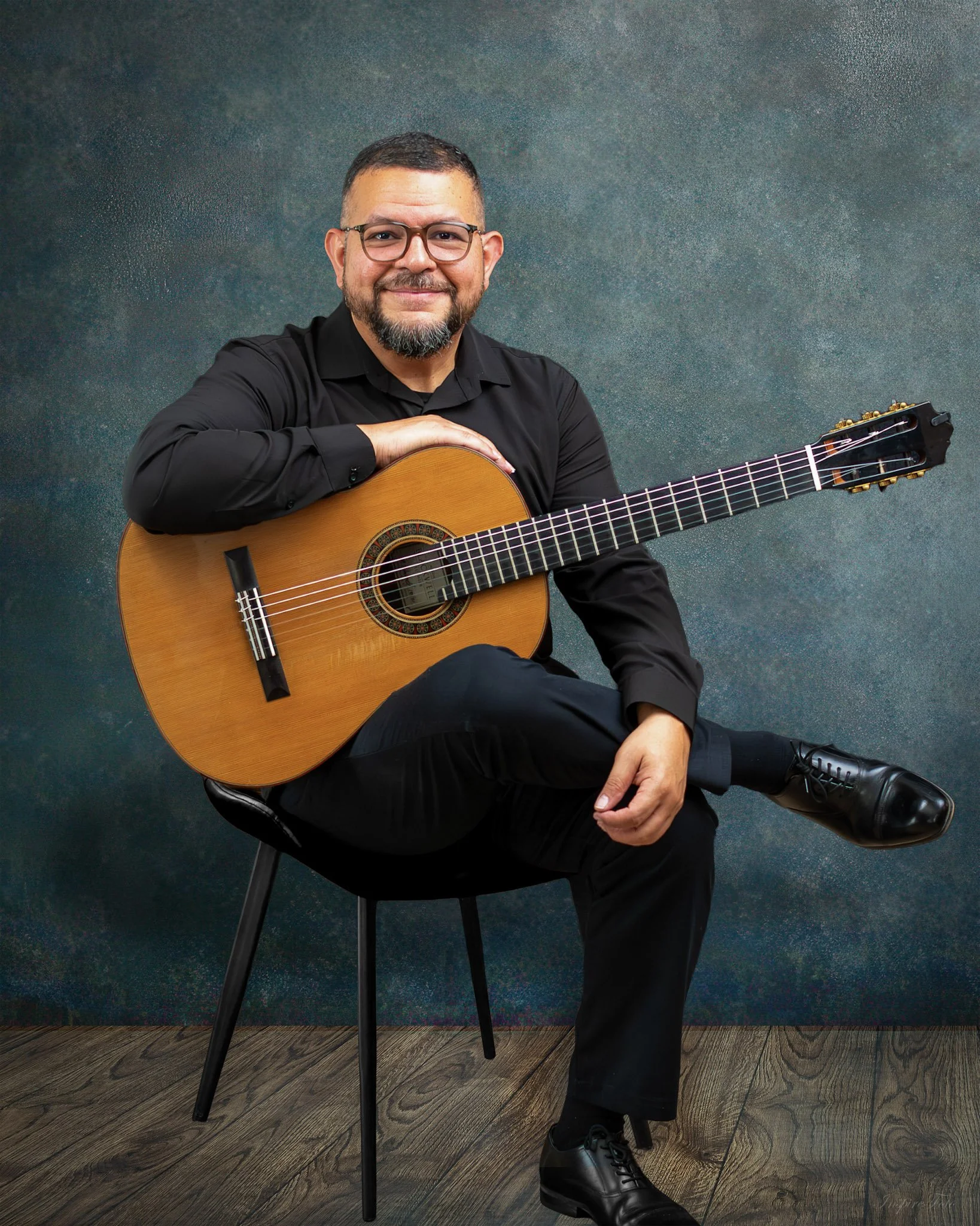 Dr. Bustos holds a Bachelor of Music in Guitar Performance from the University of New Hampshire, where he was the first and only guitarist to receive a full scholarship. He earned both his Master of Music and Doctor of Musical Arts degrees from the University of Texas at Austin, studying under the renowned guitarist Adam Holzman.